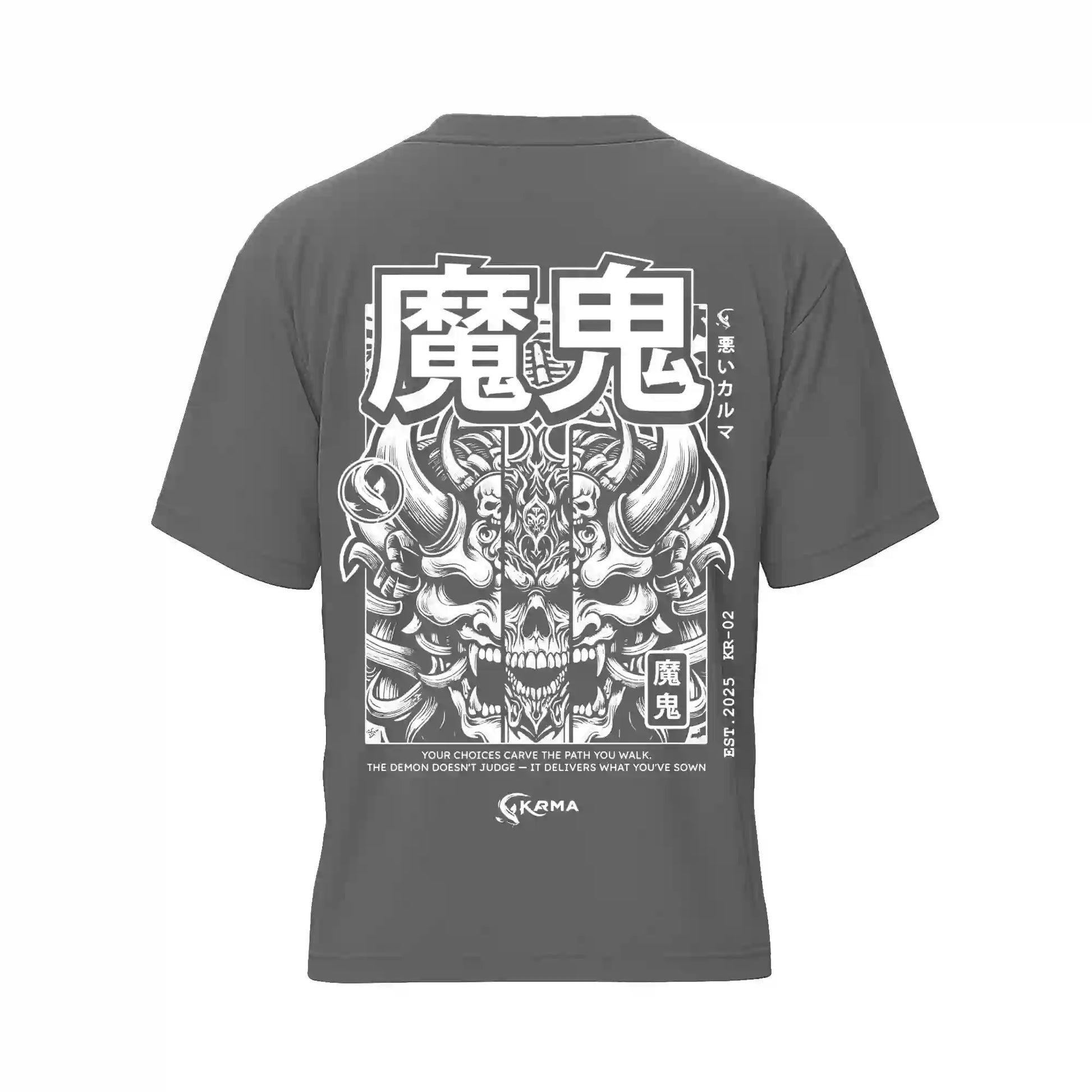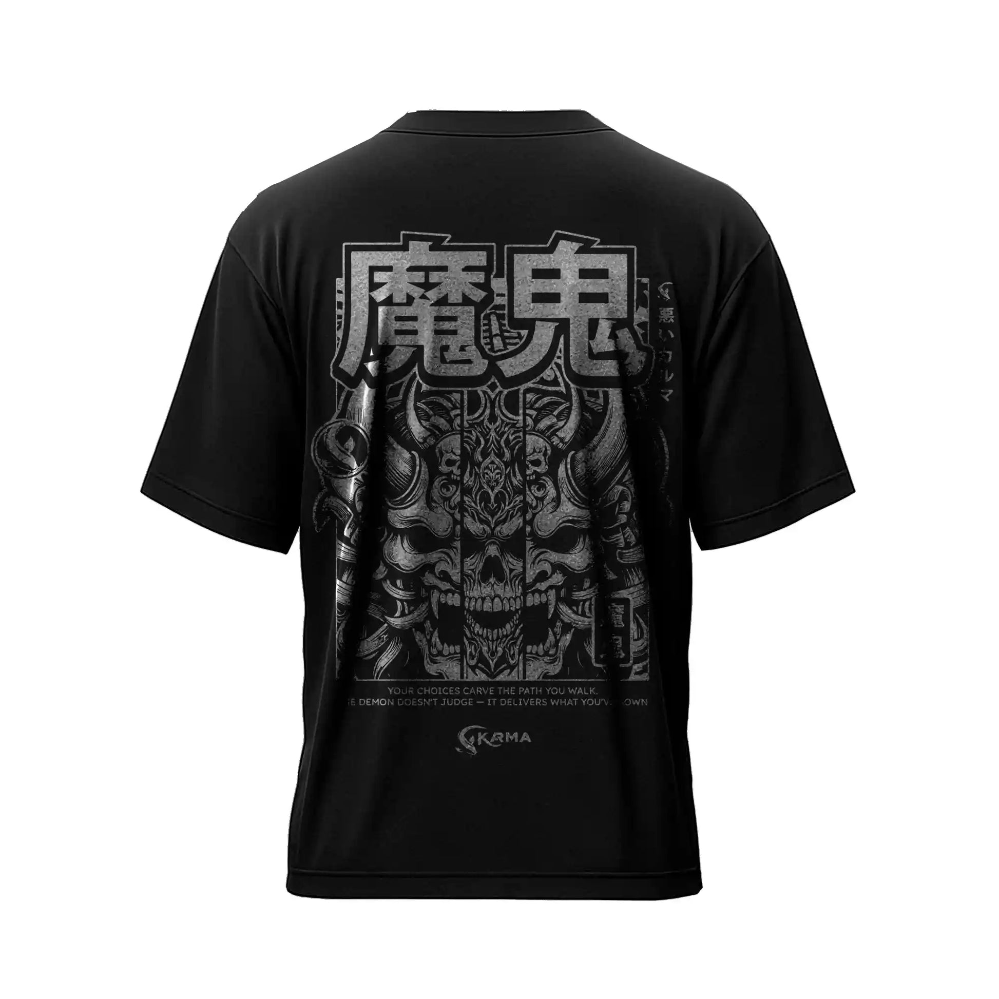 El demonio no juzga, solo devuelve lo que sembraste. Este diseño refleja el karma oscuro, la consecuencia inevitable de nuestras acciones. Cada detalle evoca respeto, poder y misterio.